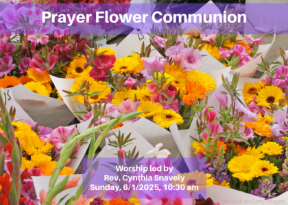 I titled this sermon “Prayer,” and then I said that we would also celebrate our flower communion today. I think of the word prayer broadly and expansively. I think the flower communion ritual is a prayer. I think taking time to be idle, to stop our incessant doing and simply pay attention, is prayer. I think both our hymns and the choir anthem we sing and hear this morning are prayers. I think when we purposefully determine how we will live our lives that too is a prayer.